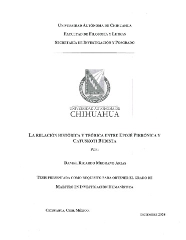 MEDRANO ARIAS, DANIEL RICARDO (2025) LA RELACIÓN HISTÓRICA Y TEÓRICA ENTRE EPOJÉ PIRRÓNICA Y CATUSKOTI BUDISTA. Maestría thesis, Universidad Autónoma de Chihuahua.