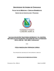 TERRAZAS ZUÑIGA, ITZELH MAGDALENA (2025) ASOCIACIÓN ENTRE TRASTORNO DEPRESIVO Y EL CONTROL METABÓLICO EN PACIENTES CON DIABETES TIPO 2 ATENDIDOS EN EL HGR NO. 1 DEL IMSS, CHIHUAHUA. Especialidad thesis, Universidad Autónoma de Chihuahua.