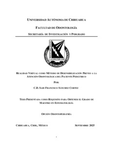 SÁNCHEZ CORTEZ, SAID FRANCISCO (2025) REALIDAD VIRTUAL COMO MÉTODO DE DESENSIBILIZACIÓN PREVIO A LA ATENCIÓN ODONTOLÓGICA DEL PACIENTE PEDIÁTRICO. Maestría thesis, Universidad Autónoma de Chihuahua.