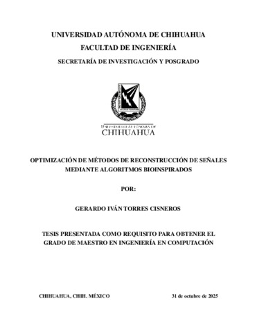 TORRES CISNEROS, GERARDO IVÁN (2025) OPTIMIZACIÓN DE MÉTODOS DE RECONSTRUCCIÓN DE SEÑALES MEDIANTE ALGORITMOS BIOINSPIRADOS. Maestría thesis, Universidad Autónoma de Chihuahua.