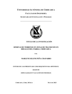PEÑA CHAPARRO, MARLENE SELENE (2026) OFERTAS DE TERRENOS EN ZONAS DE TRANSICIÓN EN HIDALGO DEL PARRAL CHIHUAHUA. Especialidad thesis, Universidad Autónoma de Chihuahua.
